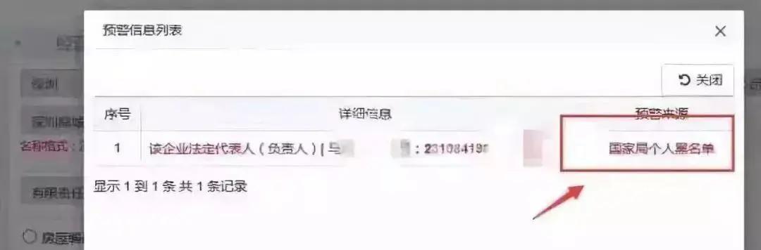 下圖的這個就是個典型,注冊公司的時候,填進去身份信息,直接彈出預(yù)警“國家局黑名單”。