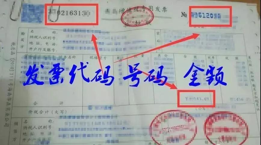 第三步:對照增值稅發(fā)票上的發(fā)票代碼,發(fā)票號碼,開具金額: