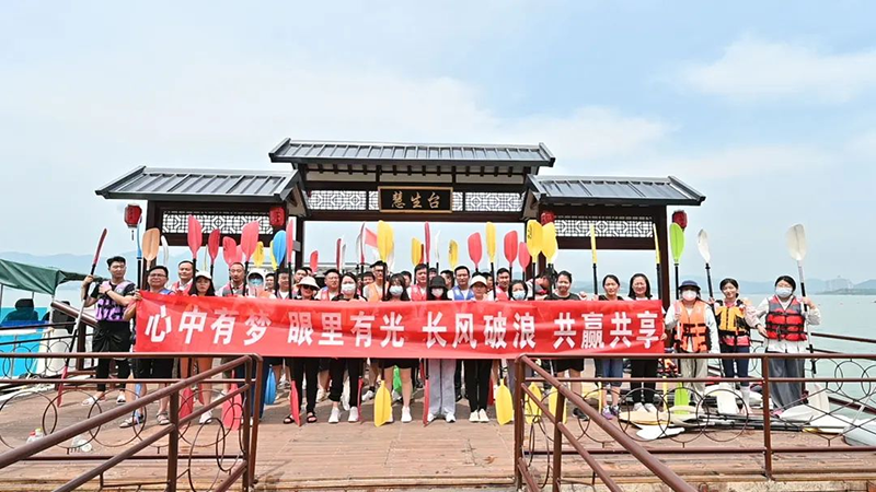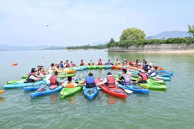 來到雪野湖的第一個游玩項目是“水上皮劃艇”,劃一艘小艇劈波斬浪,享受美麗的自然風光,大家都對于這個項目十分感興趣,興致勃勃地想要挑戰(zhàn)自己。很多同事都勇敢的突破自己, 體驗了一把“水上行走”,這種敢為人先,勇于突破的精神也正是鼎點企業(yè)一直秉持的信念。