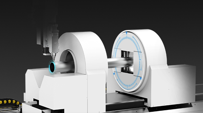 自主研發的伺服跟隨式支撐系統,對各種管材可自定心,大小管全尺寸 都能勝任;高密度成組式支撐,承重性強;能夠根據管材轉動時的高度 實時調整高度,實現切割過程中的完美貼合,保證切割精度