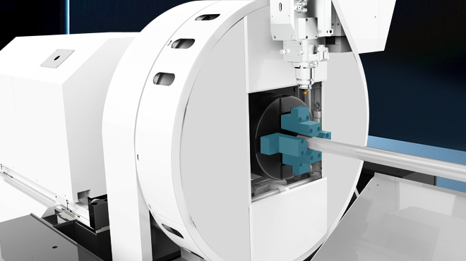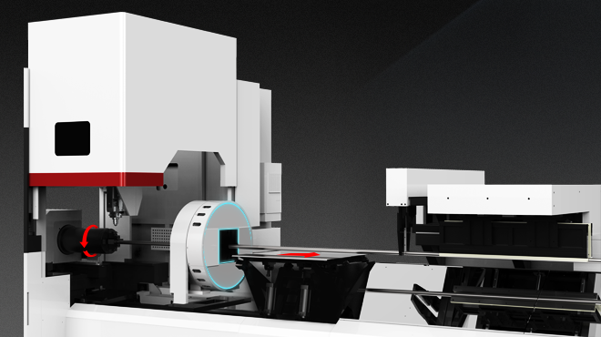 前卡盤可移動,兩側對中裝置防止工件甩動,保障加工精度 激光頭合理避讓和擺正,實現超短尾料切割