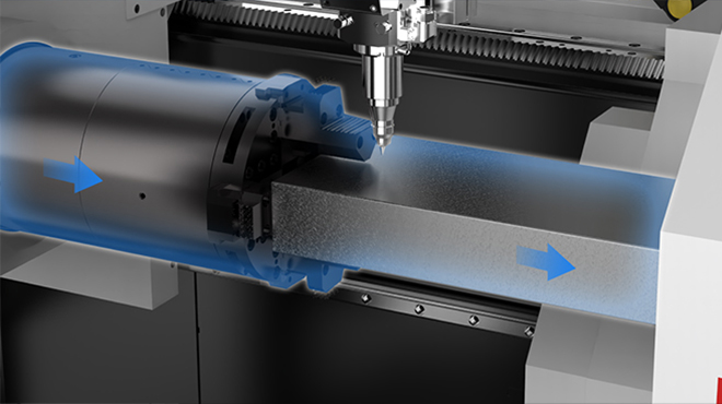 前卡盤可前移≤1400mm進行越位避讓,能有效防止長工件的甩動,減小切割尾料,部分機型最小尾料僅35mm,提升加工精度,降低成本;